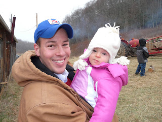 The hay ride to get to the trees. Audrey doesn't look too impressed by Daddy's funny faces.